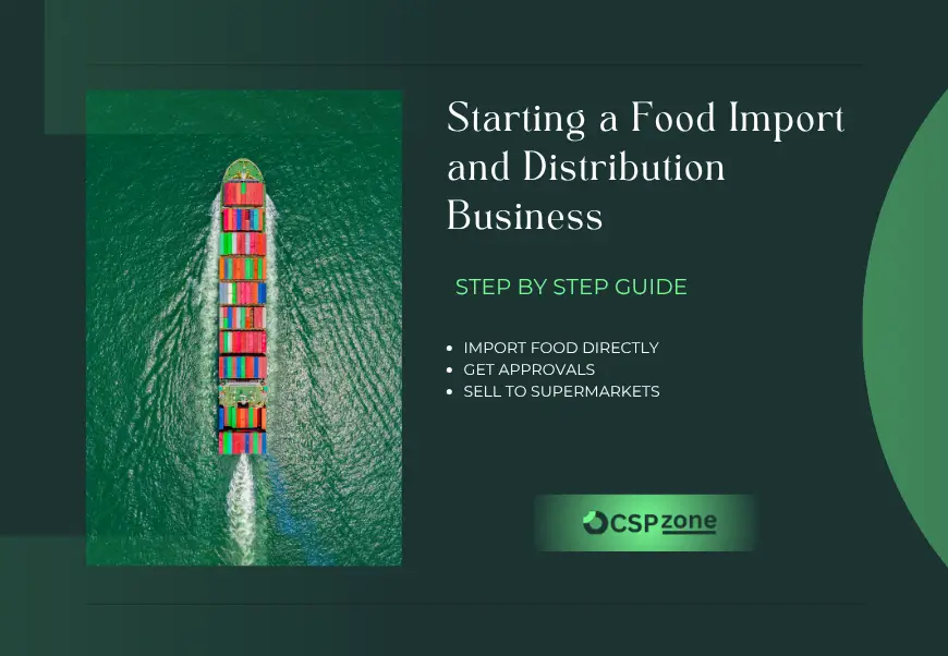 We explain how to start a food import and distribution business in Dubai for the local UAE market, covering market opportunities, licensing, Dubai Municipality approvals, product registration, storage requirements, customs clearance, and how CSPzone Consultant can help you set up and connect with local buyers.